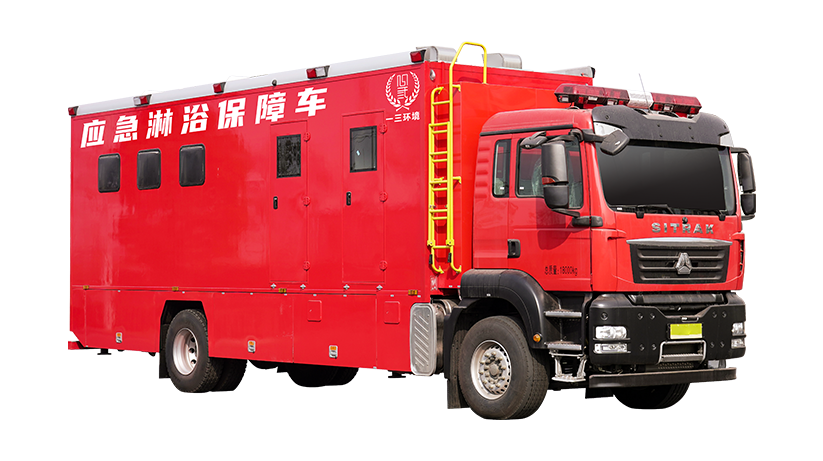 淋浴车主要由底盘、厢体、淋浴系统、水路系统、电气系统、油路系统等组成,主要为野外救援人员提供齐全的淋浴保障,可满足 8 人/批次淋浴需求。具有高机动、安全环保、使用便捷的特点,综合性能可靠,使用便捷。