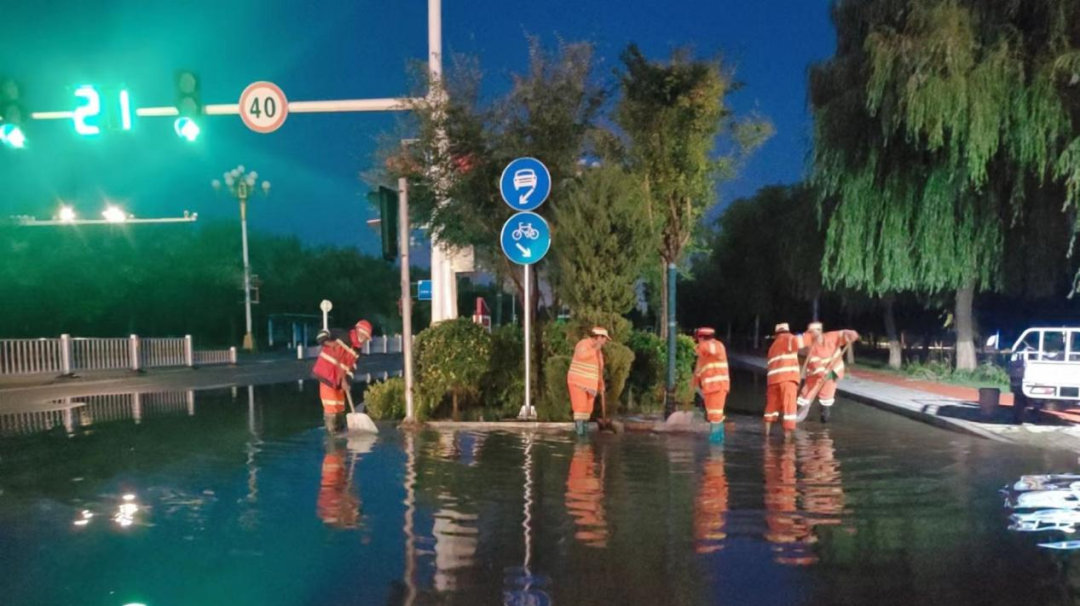 为保障市民和车辆安全顺利出行,师市城市管理服务中心提前组织安排一三城市环卫管理有限公司做好应急准备。凌晨1点雨停后,迅速组织人员奔赴相关点位,针对强降雨后的道路积水、苗木倒伏、市政设施故障等问题开展地毯式排查。8月2日早晨6点半,一线环卫工人全面展开道路积水、淤泥和断枝落叶的清理工作。